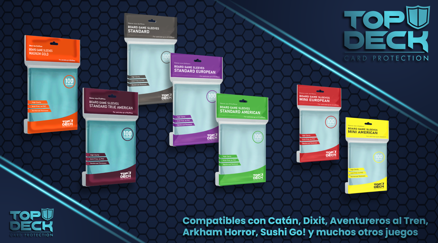 Top Deck es una marca de Accesorios para TCG y Juegos de mesa en donde podrás encontrar productos como Protectores de cartas, Carpetas, Portamazos y hasta Playmats personalizados.