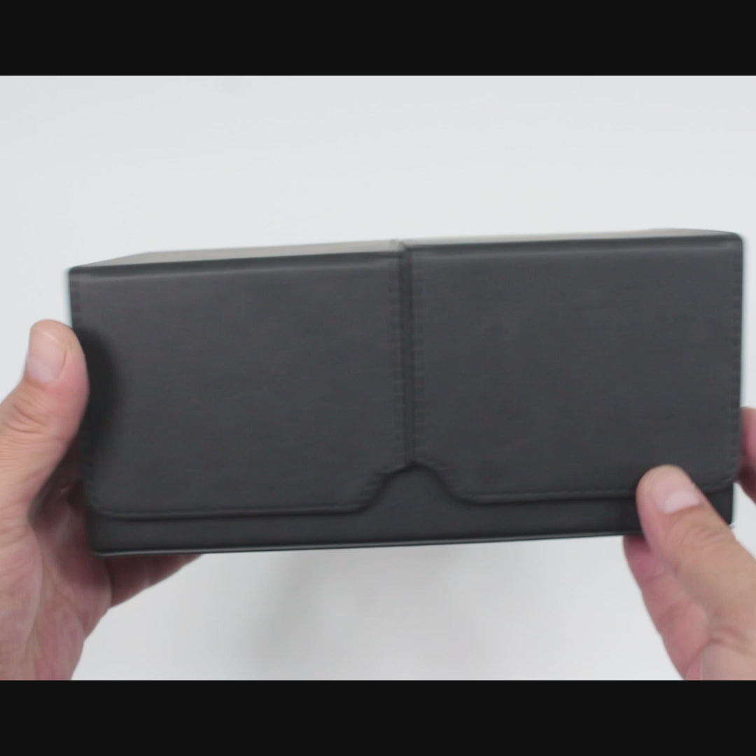 Protege y organiza tus cartas con este práctico Portamazos Premium para Cartas, perfecto para los coleccionistas y jugadores más exigentes. Este Portamazos Premium tiene dos compartimientos separados para almacenar hasta 200 cartas con Protectores, además de un cómodo compartimiento para guardar dados y contadores. Fabricado con una cubierta de eco-cuero y un interior de tela, tus cartas estarán más protegidas que nunca y tu baraja se vera realmente elegante.